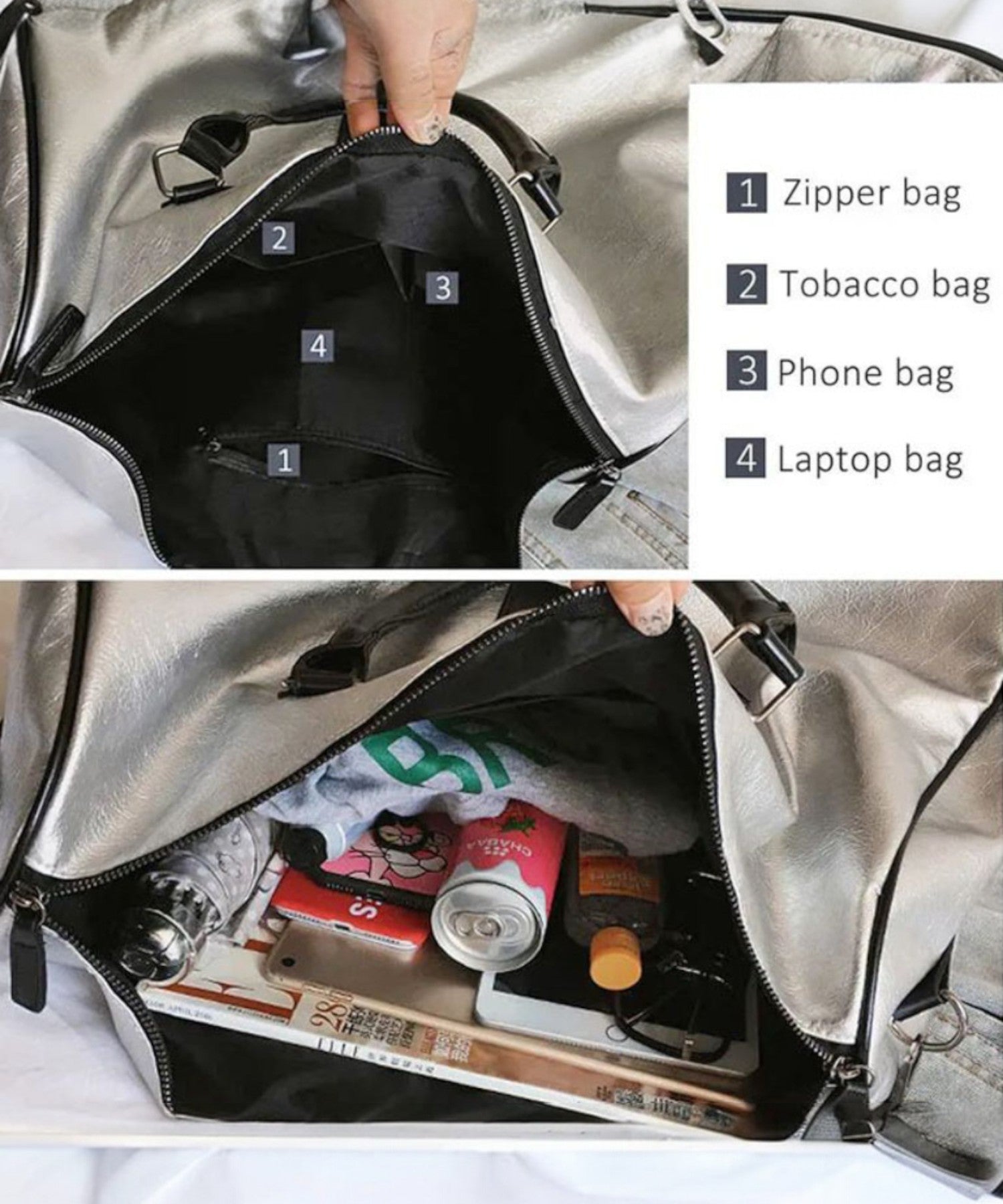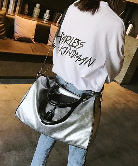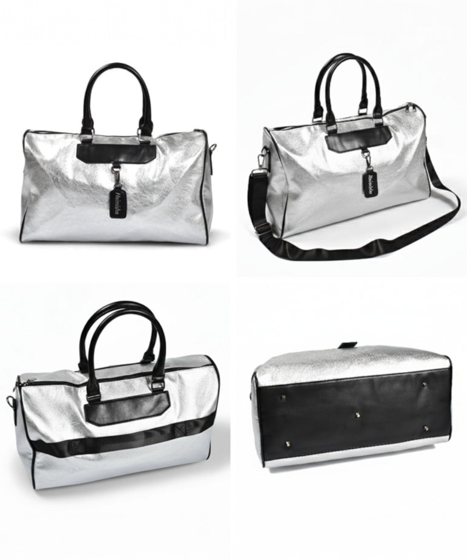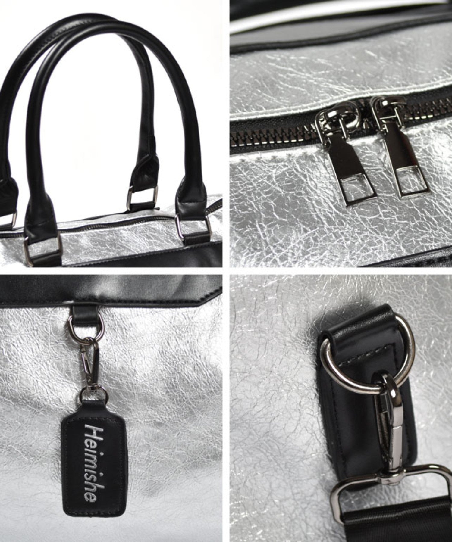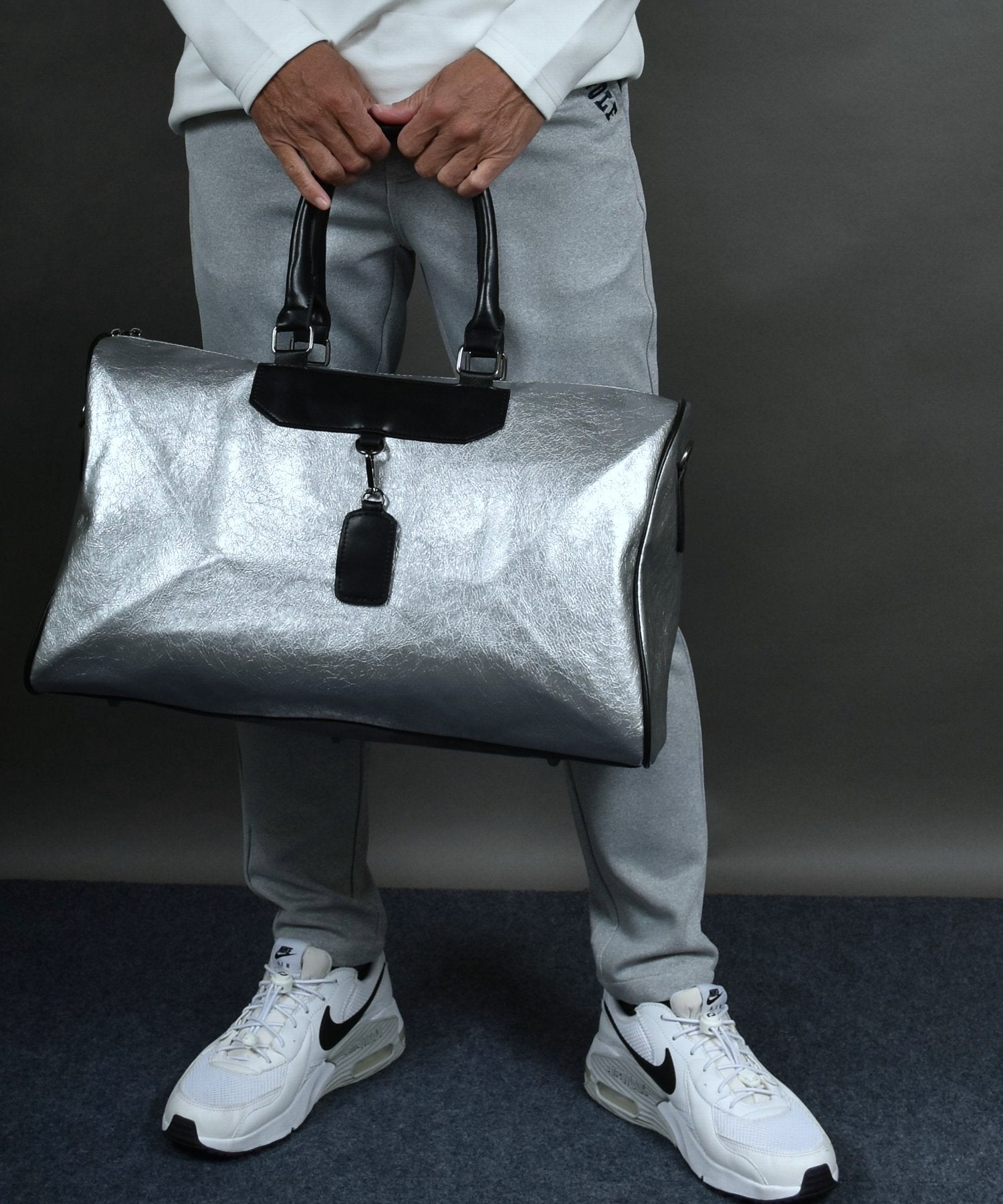 色もシルバーでオシャレで、軽量で柔らかい合成皮革素材です。
