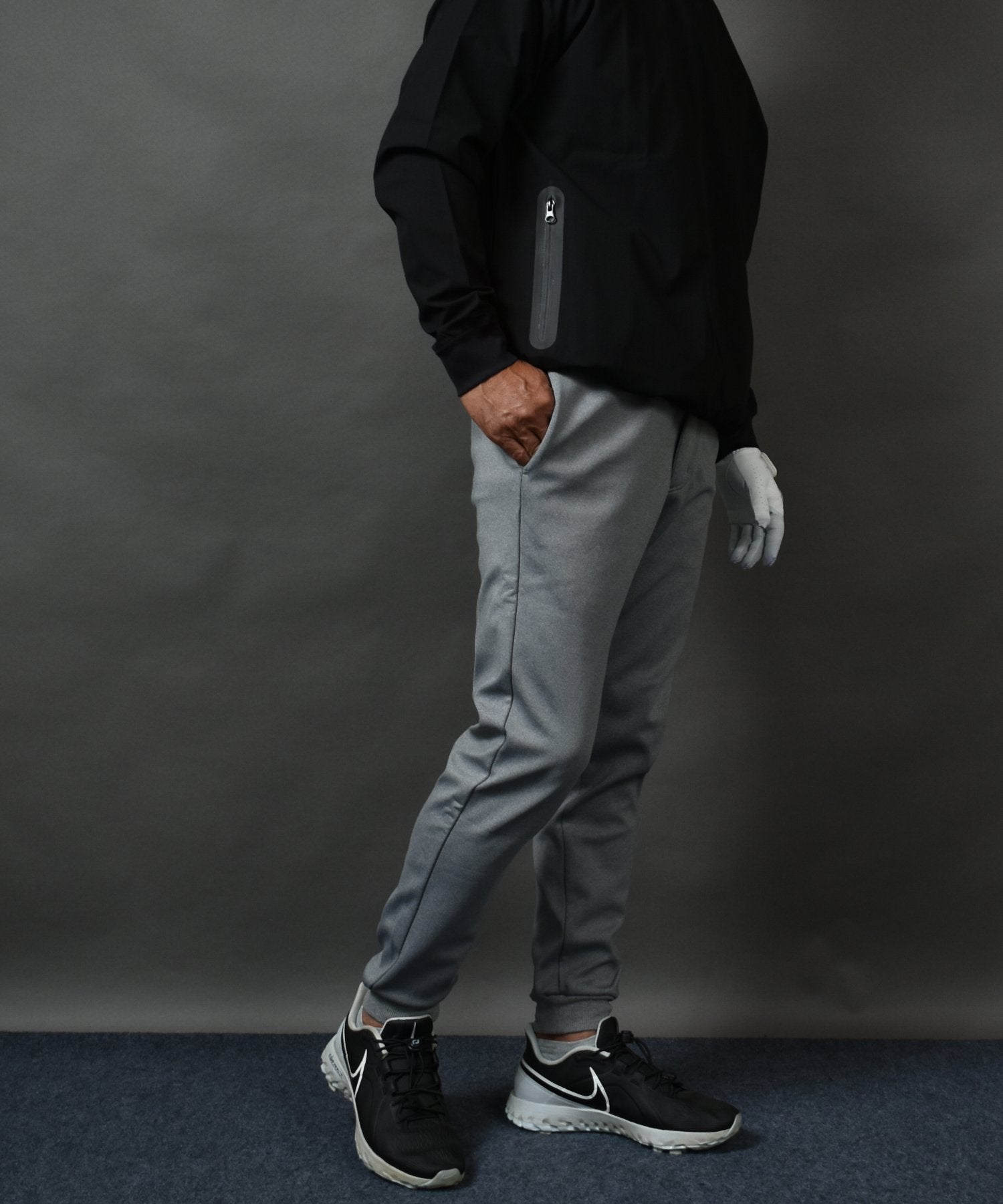 テーパードのジョガーパンツでシルエットもとてもきれいです。