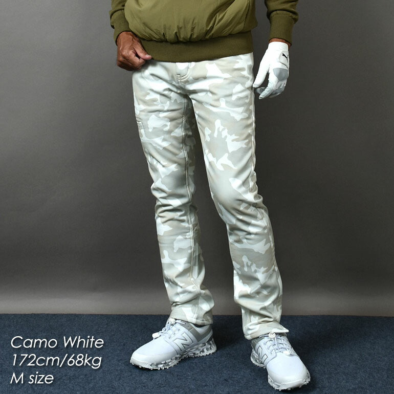 防寒!裏フリースボンディングウエストゴム入り総柄ゴルフパンツ(CG-A21033)