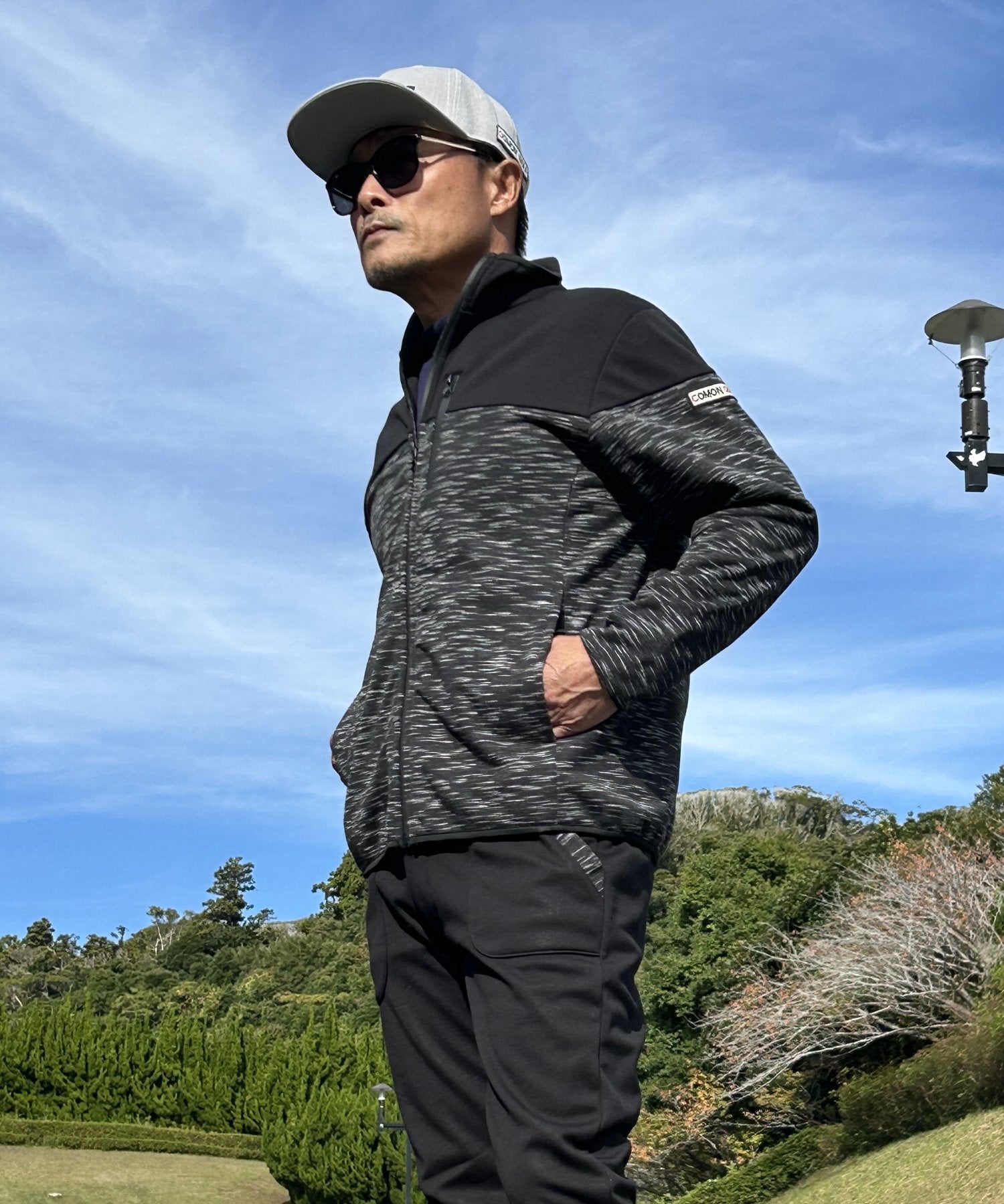 一番の特長は「防風タイプ」のあったか仕様であること。これはどういうことかというと表生地・防風フィルム・裏地フリース素材の3枚のパネルから構成された3層構造になっているんです。なので、寒風をシャットアウトしてくれるから、モコモコしない薄手タイプなのに暖かいんです! ものすごくは伸びませんがストレッチ性があるのでスイングして突っ張る感覚はないですね。 さらに裏地に肌触りのいいフリース生地を使っているので暖かいので寒い季節でもスコアアップが望めますよ!