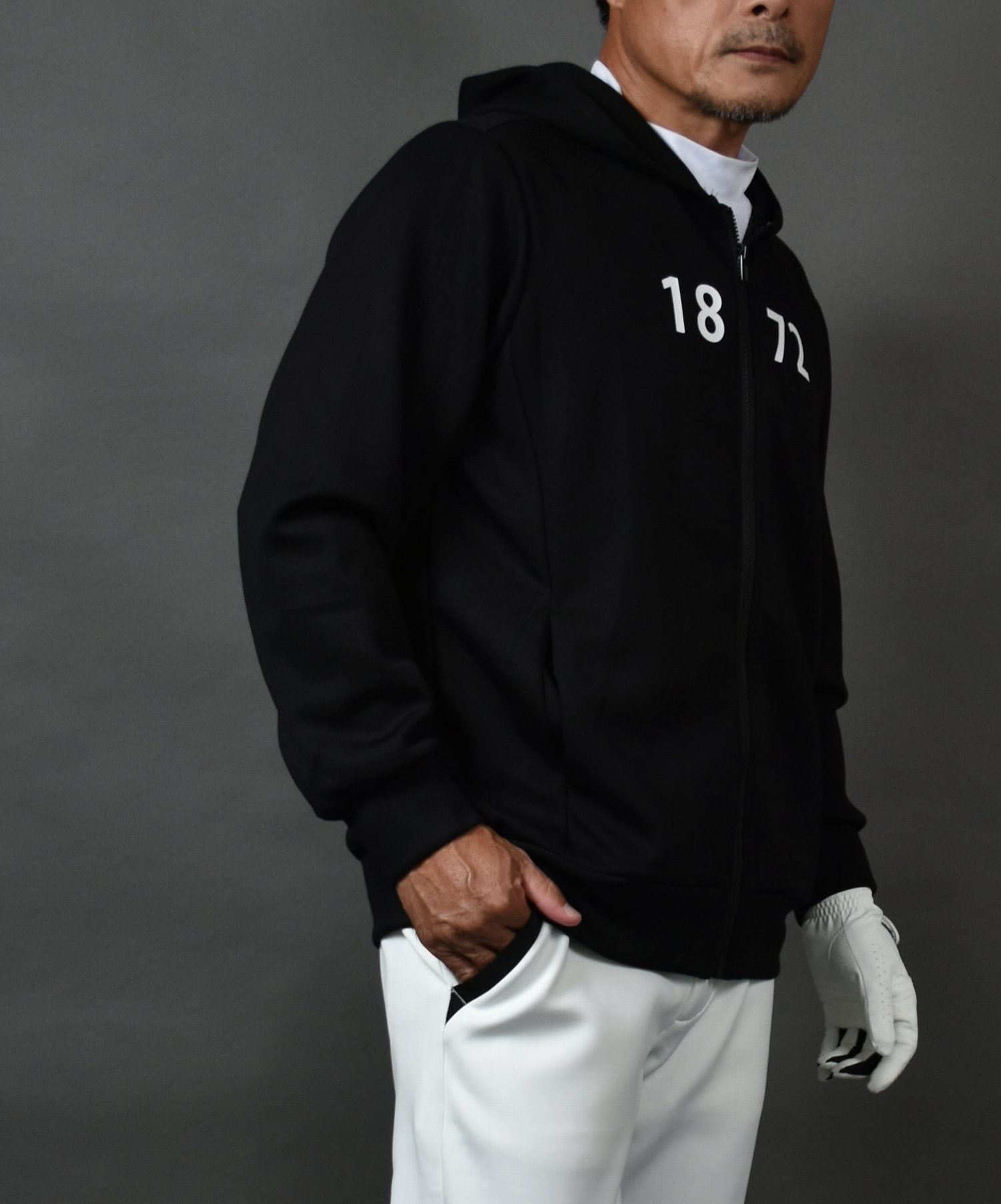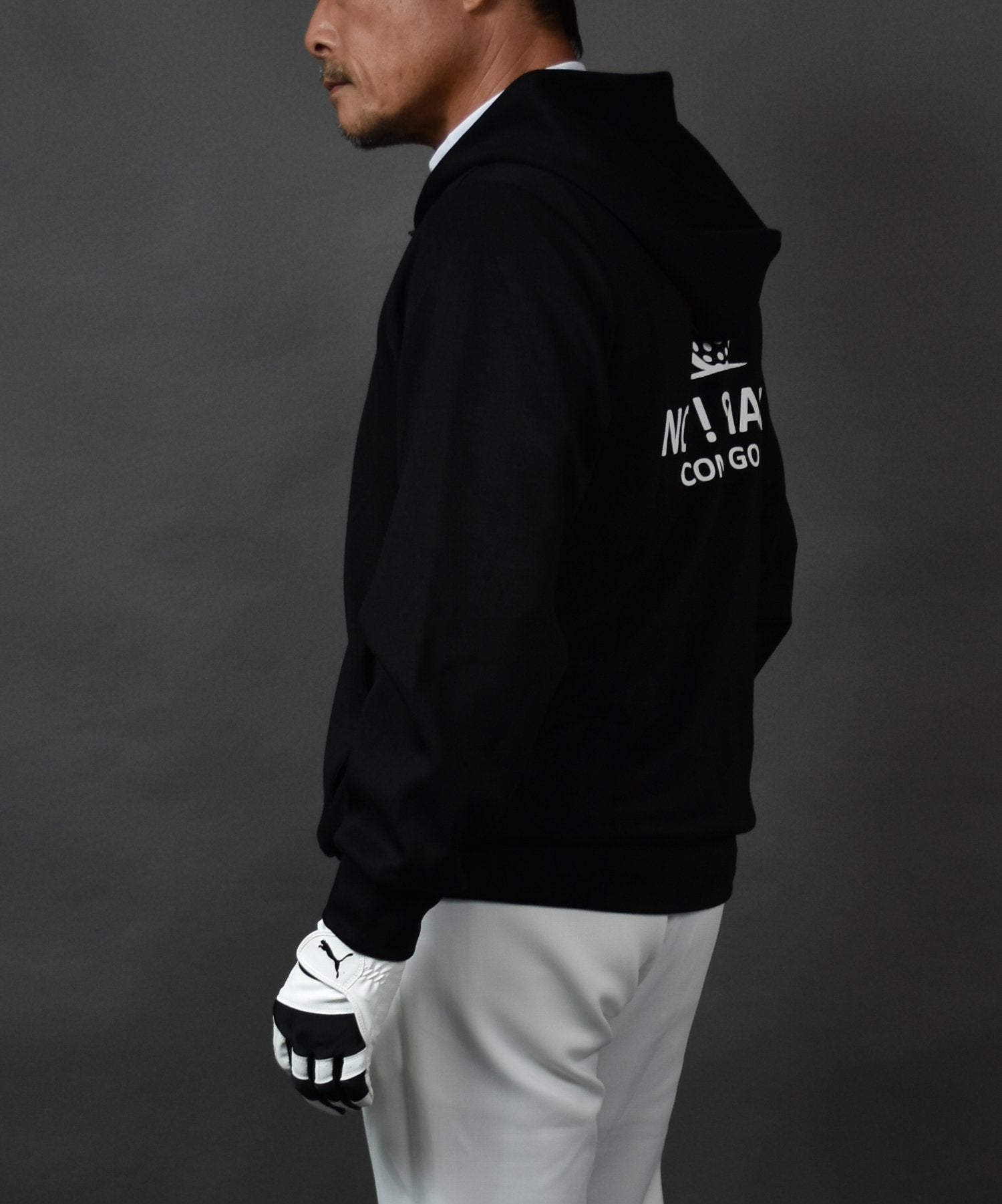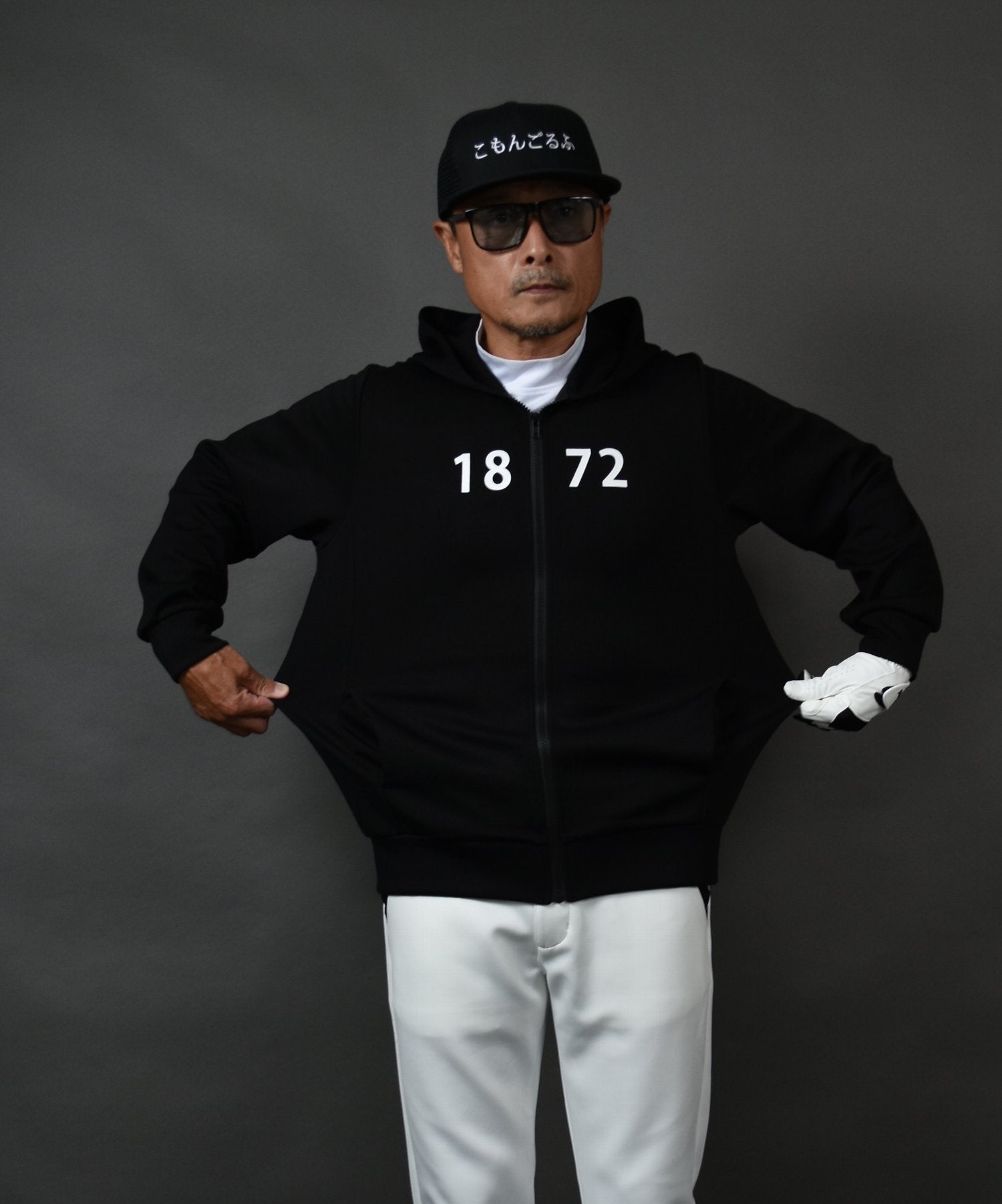COMONGOLF プリント入りエアポンチ素材フーディーゴルフジャケット