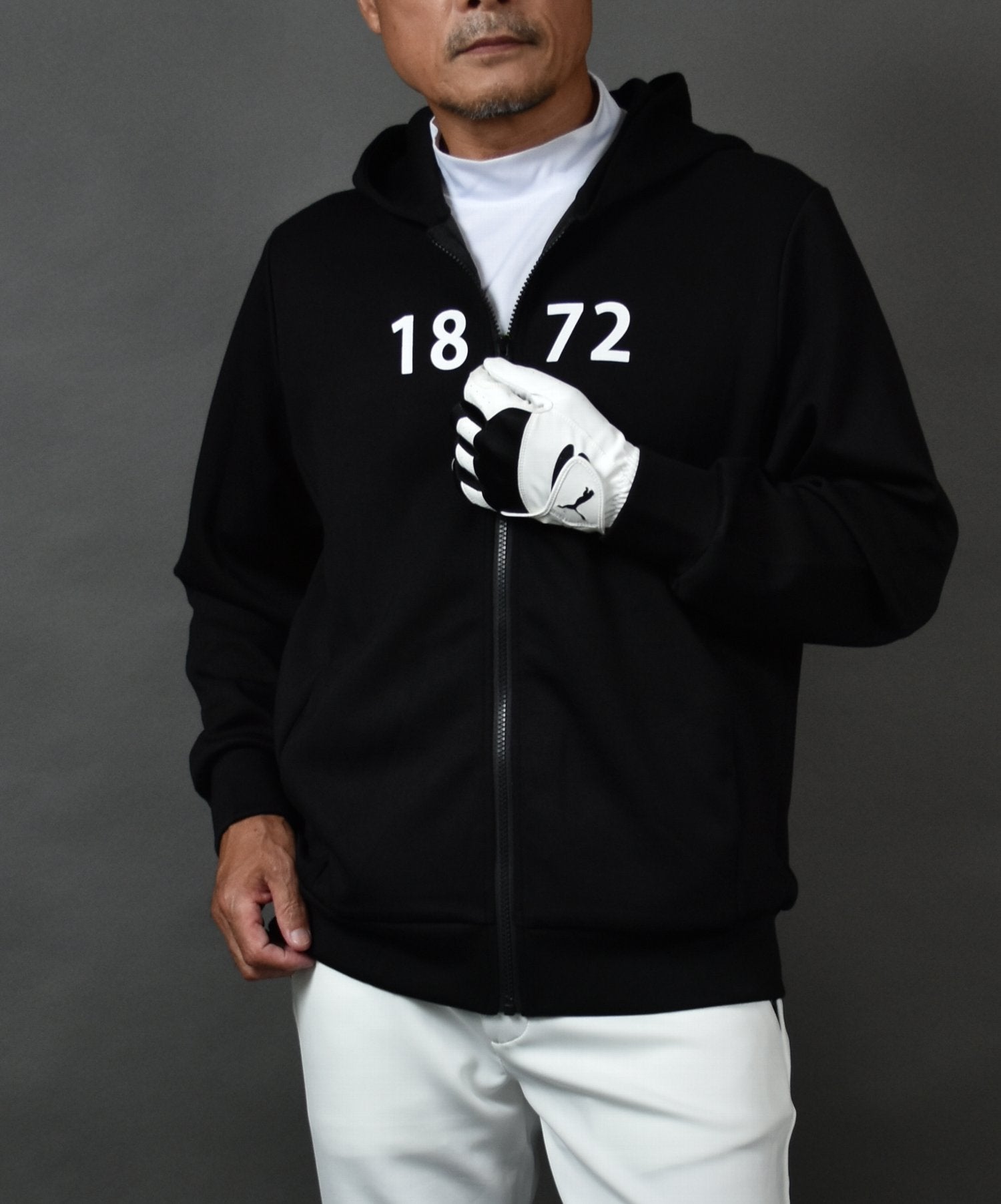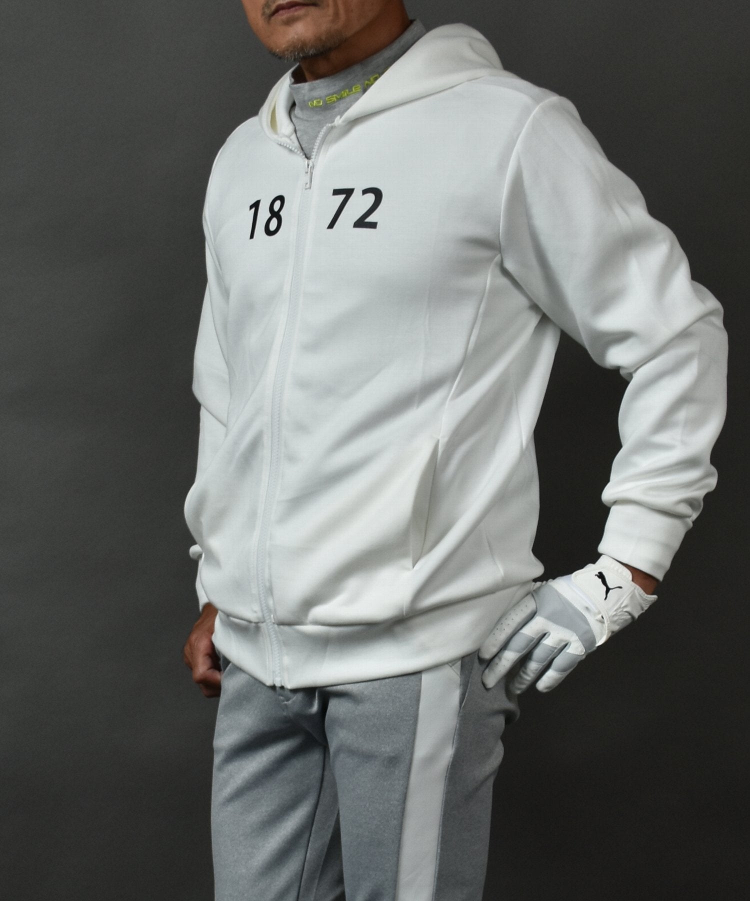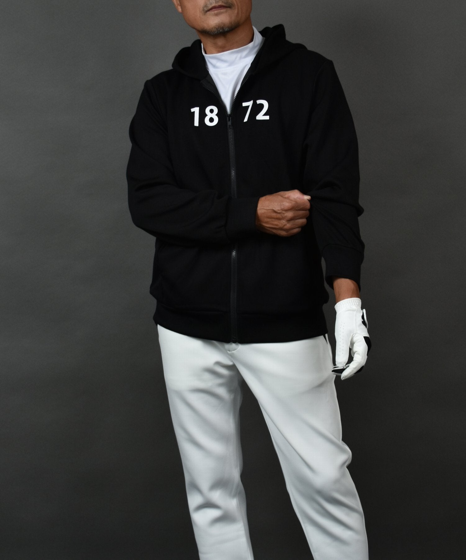 COMONGOLF プリント入りエアポンチ素材フーディーゴルフジャケット