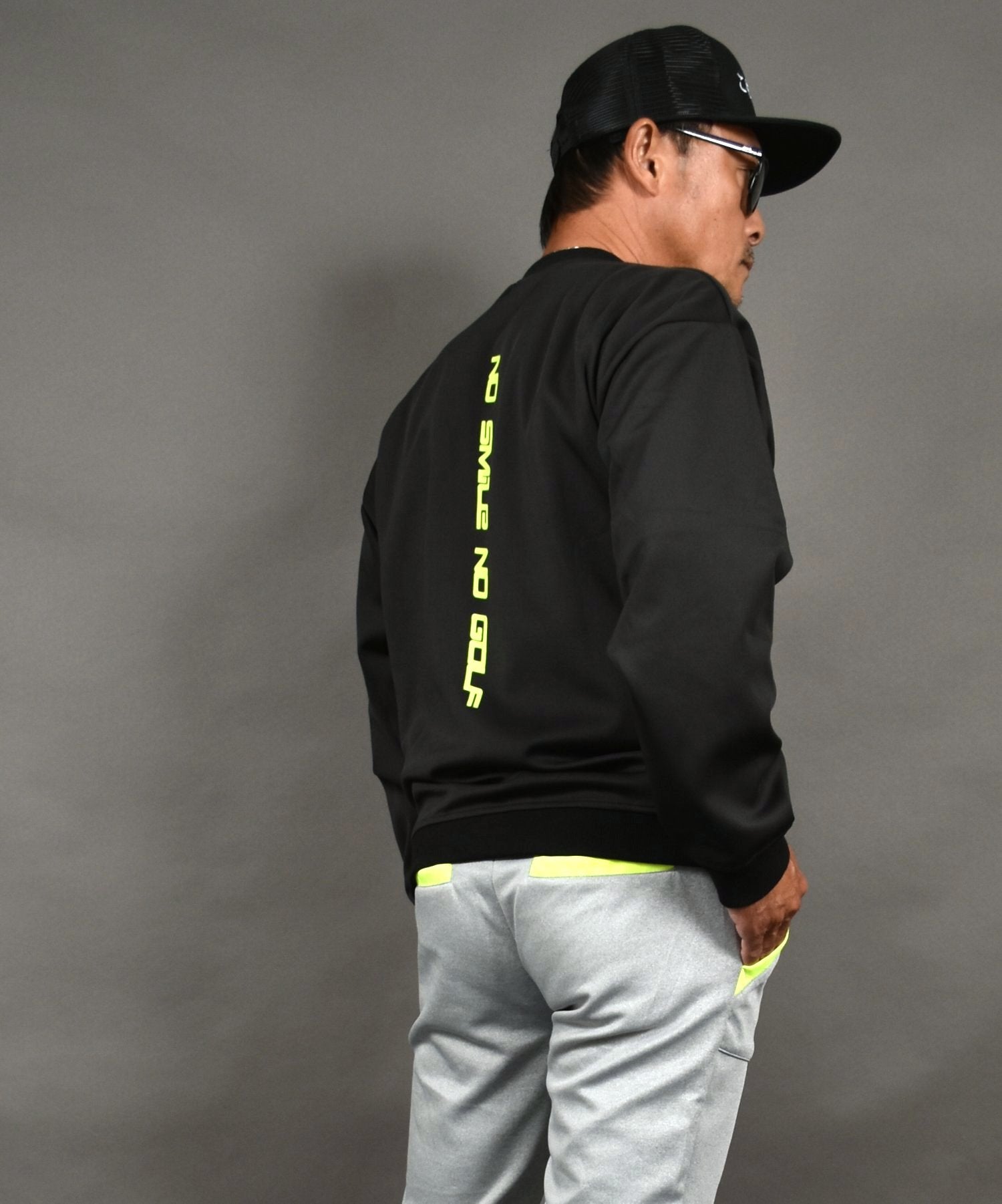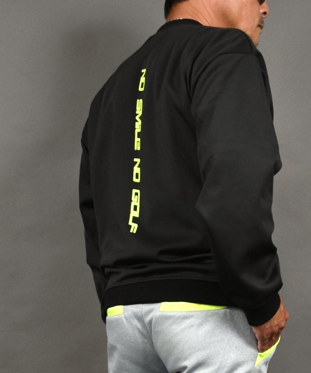 バックロゴ入りポンチ素材長袖モックネックゴルフプルオーバー