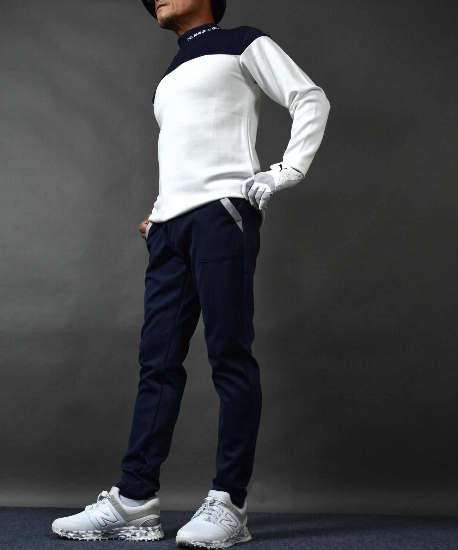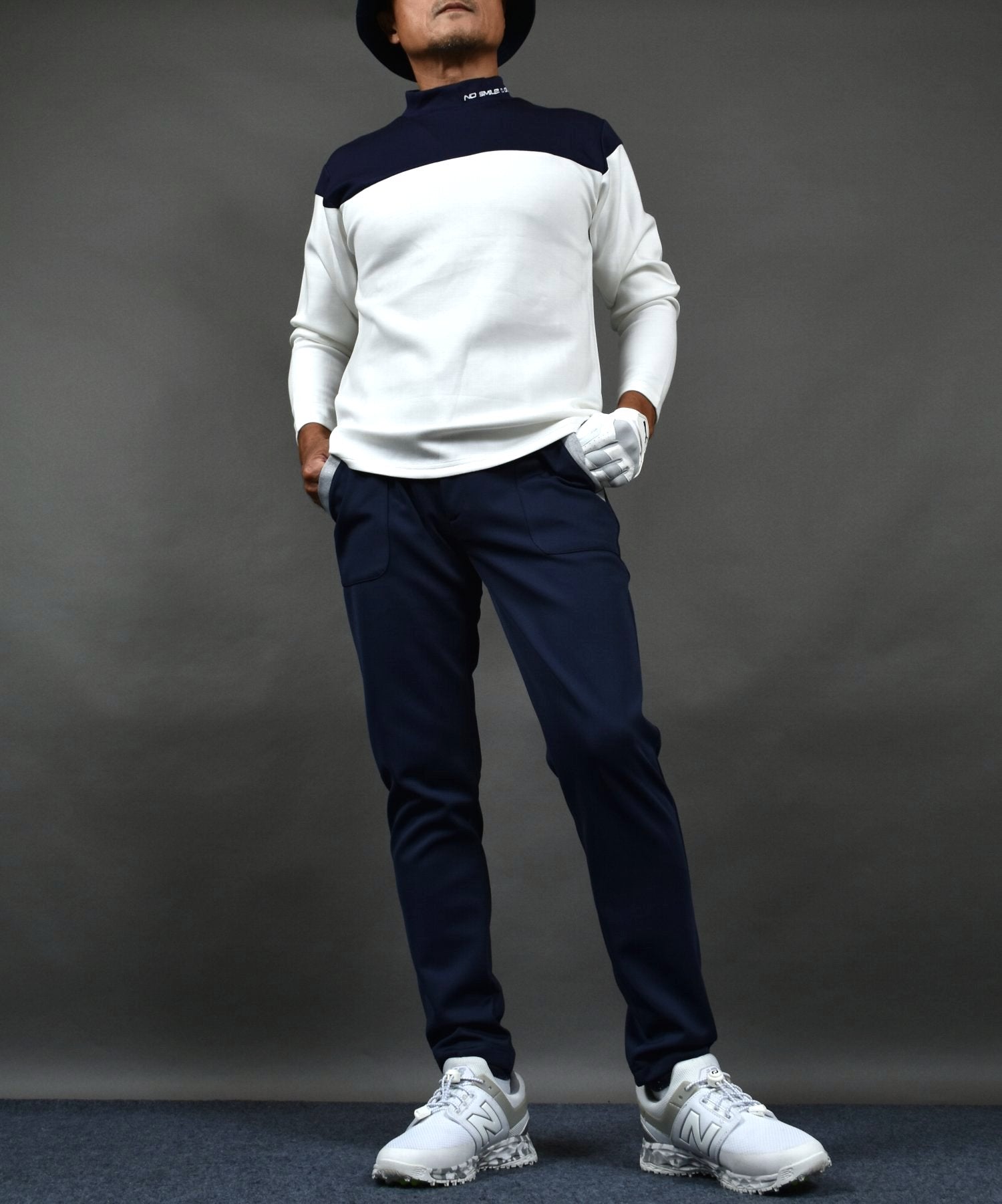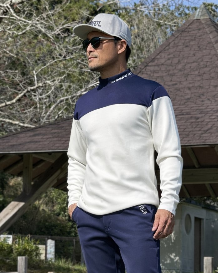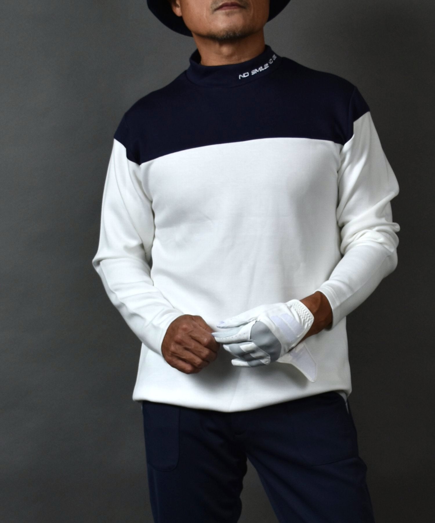 COMONGOLF 柔らかいポンチ素材バイカラーモックネック長袖ゴルフシャツ