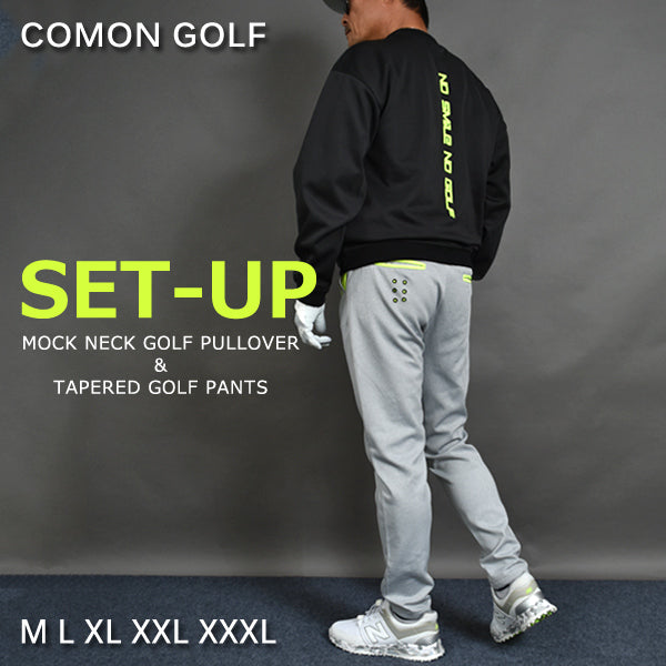 COMONGOLF ポンチ素材バックロゴ入り長袖モックネック&テーパードゴルフパンツセットアップ