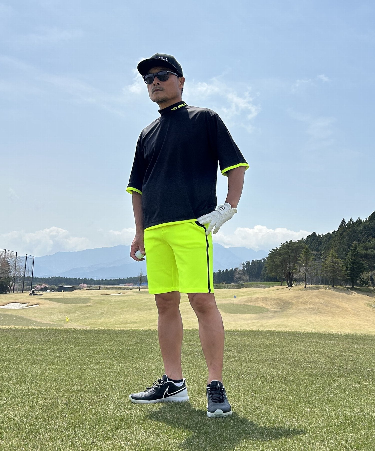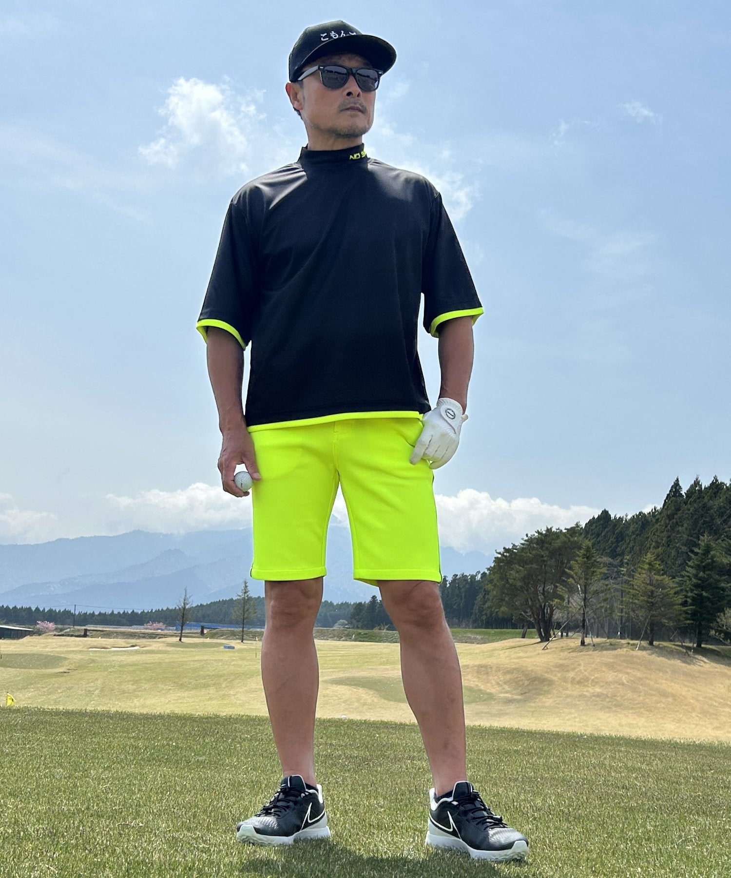 ボックスシルエット半袖モックネック&ショートパンツゴルフセットアップ(CG-SET505YE)