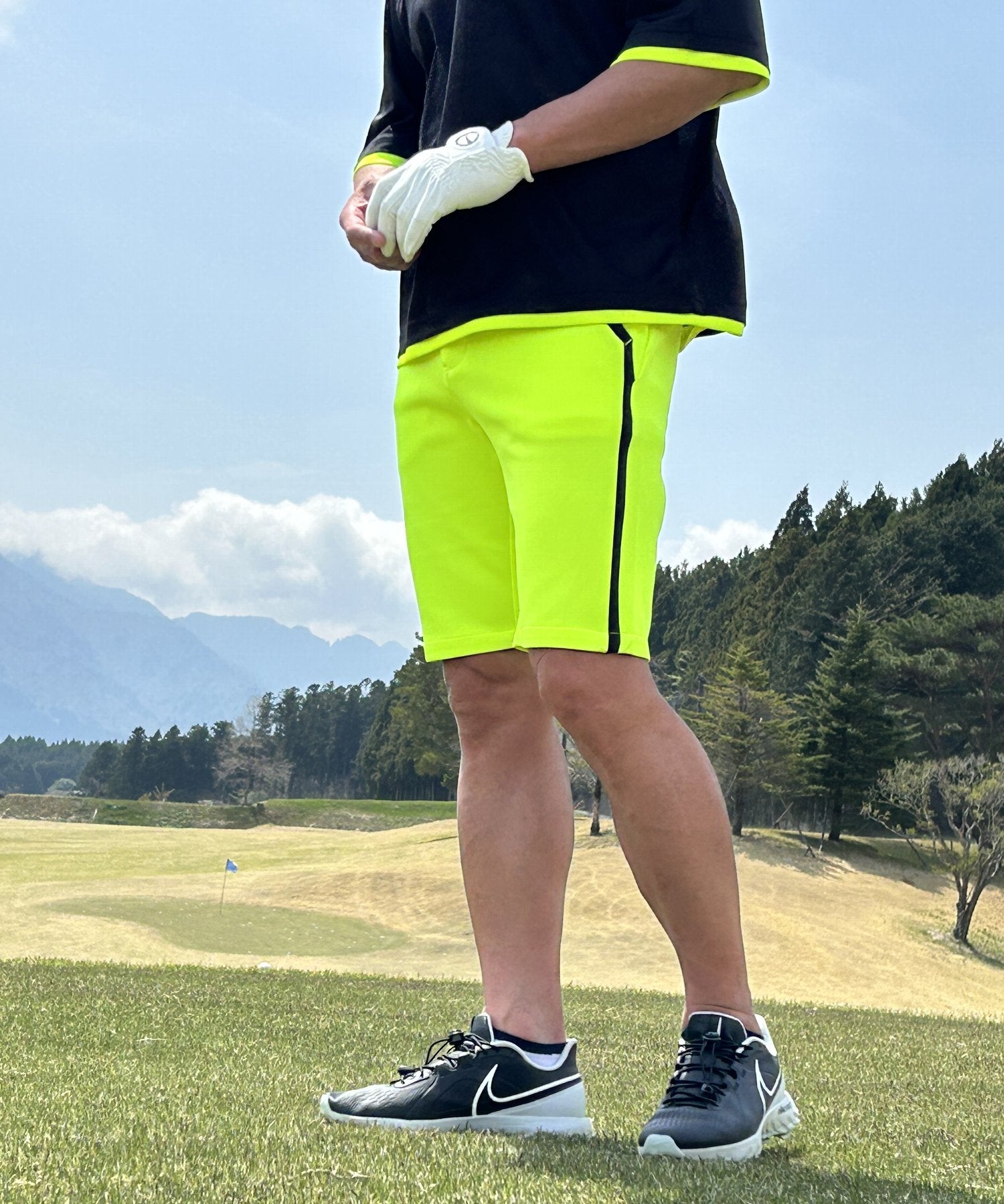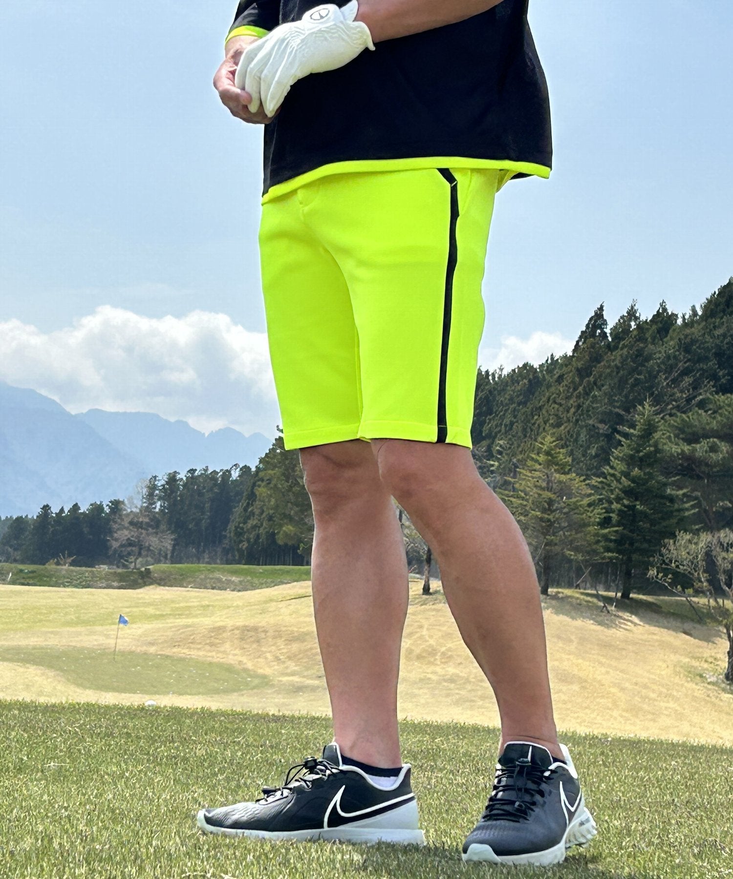 ショートパンツはサイドラインとポケット縁をネオンイエローにしたスポーティー感と爽やかさを感じるデザインです。
